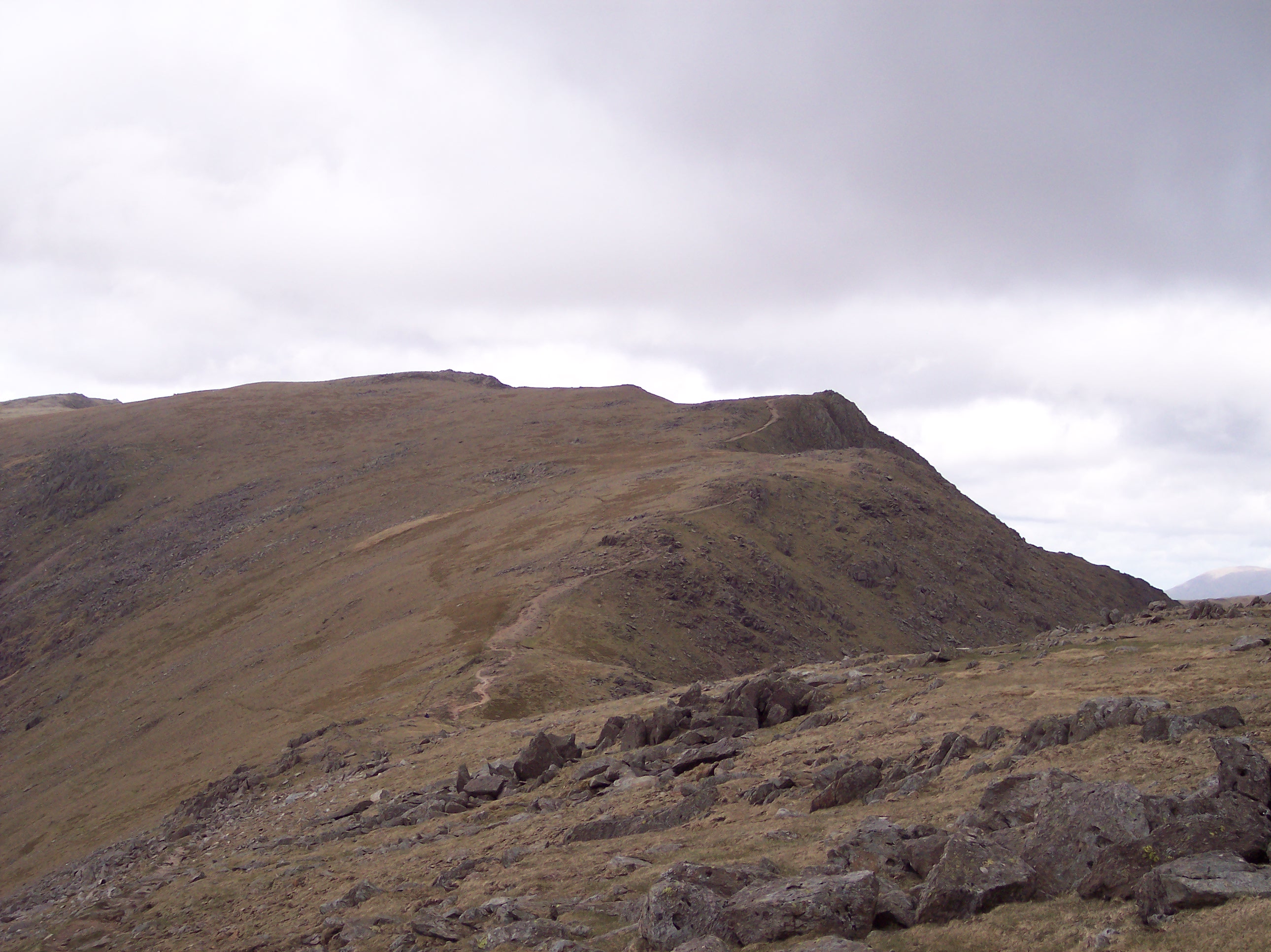 This doesn’t seem to help with motivation and I head down to Goat’s House. At the bottom I look up and am put off by the climb onto the Old Man, and without breaking my stride I simply carry on taking a slanting line across the side of Brim Fell heading away from the Old Man. As I climb, there’s a vague intention to cross over the top of Brim Fell to bag the Old Man, but my heart’s not in it. I no longer care and just want the day finished as soon as possible.
