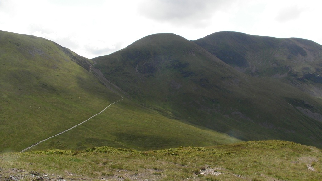 I crossed the valley and took the Braithwaite path across the bottom of Barrow. Then I swung left to begin the plod up the ridgeline to the summit.