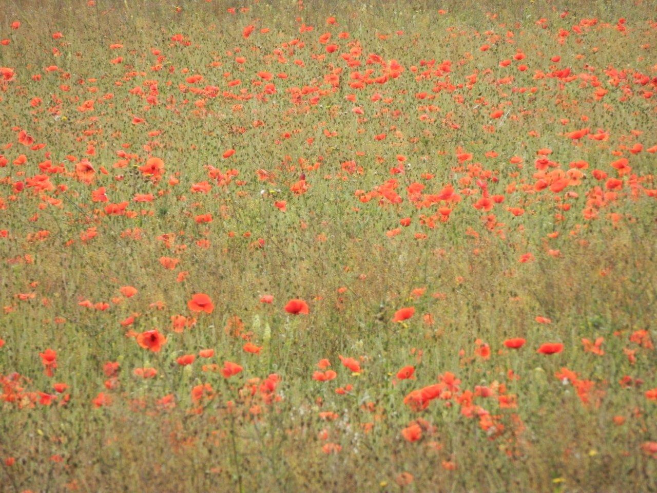 I spotted a field of poppies on the right, quite common in this part of the world, stopped to take a picture and was then startled by a voice addressing me from behind. This turned out to be Andy, the walker I’d seen ahead of me and who I’d overtaken while he stopped for coffee. He’s walking the entire NDW in one go, wild camping along the way. His pack was about a similar size and weight to mine, but somehow he had all of his camping gear.