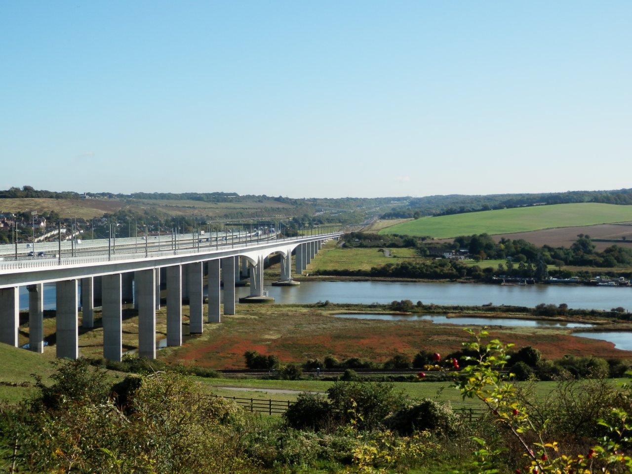 In some ways it was a mistake to stop, as I found it hard to get going again, and the afternoon was a struggle. As I approached the Medway Bridge my feet were starting to hurt and my leg muscles were starting to tighten. But I looked down on the Medway and was glad that I’d reached this key milestone on the NDW. Having just completed my “local” part of the Way that I’d done walks on several times before, every step now was new territory, walking-wise.