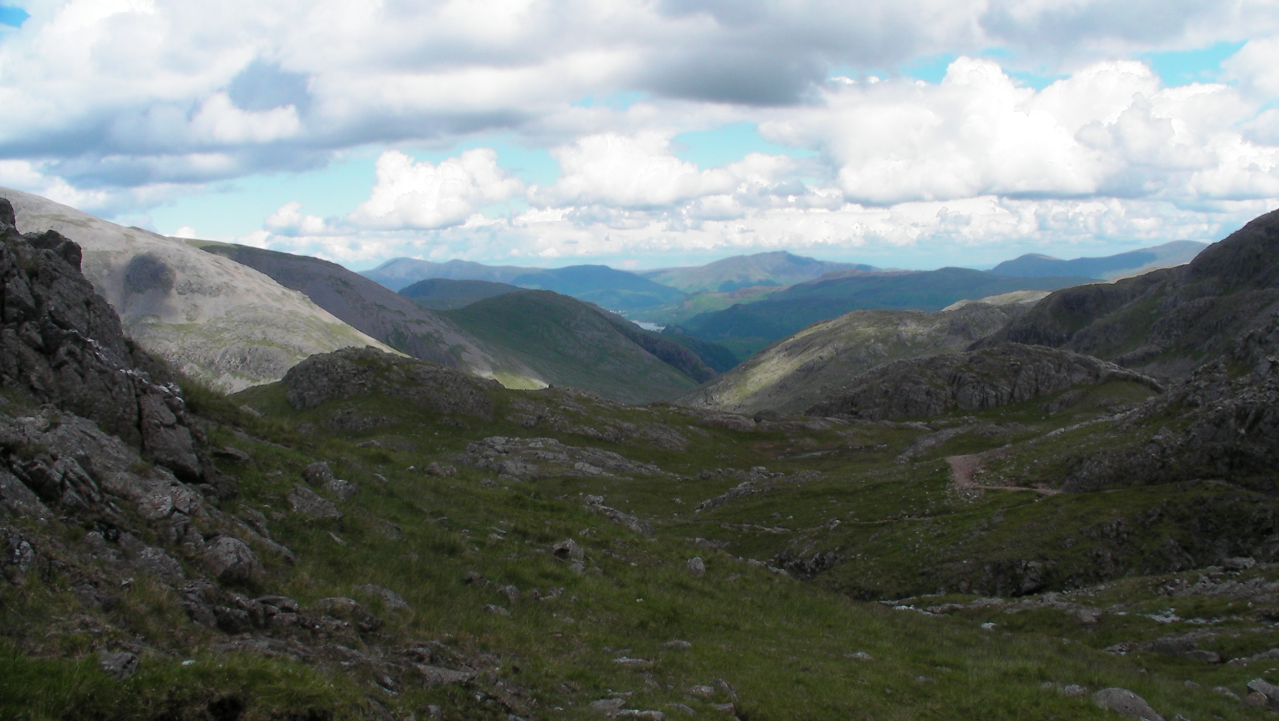 Lingmell is usually seen as an extra rather than one of the main actors in the story of the Scafells. Large parts of it are grassy rather than rocky. But it does two things really well.