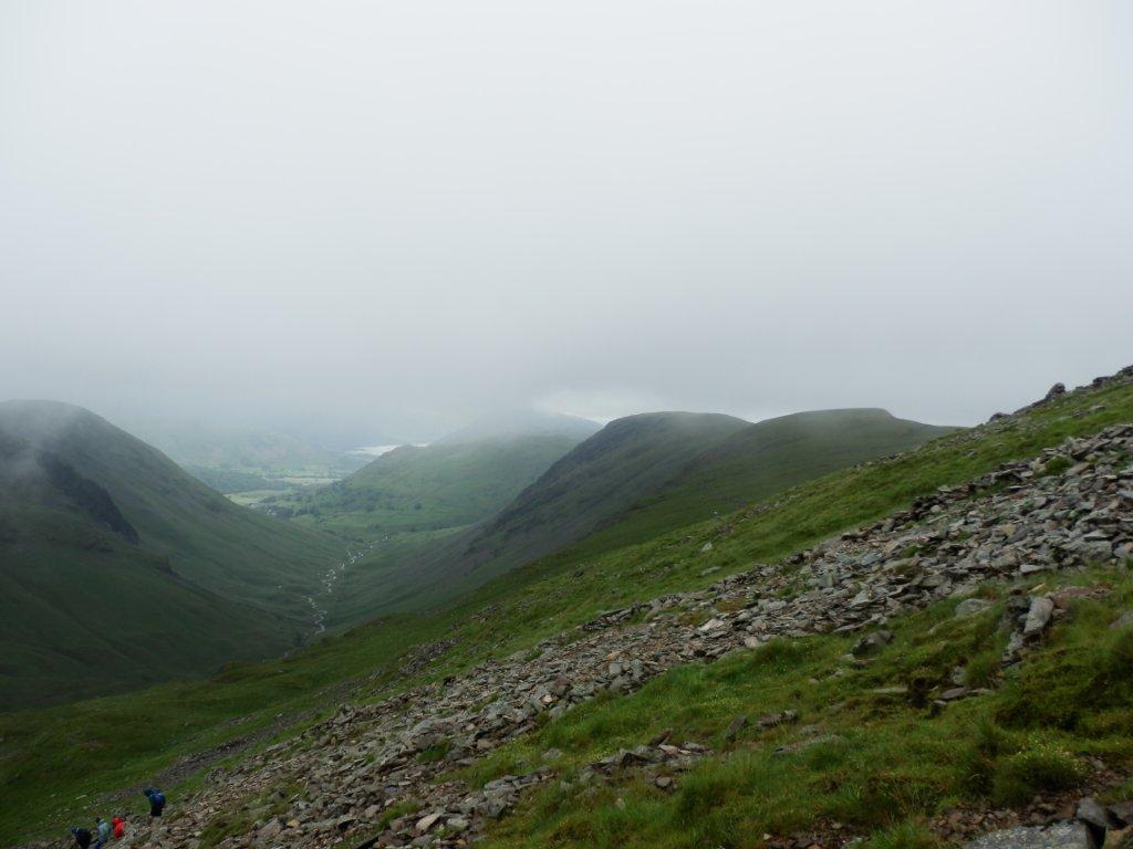I stood up and staggered around the wall just as a large group passed. They led the way down to Threshthwaite Mouth. I lurched down in their wake taking extreme care in my cold, weary and demotivated state.