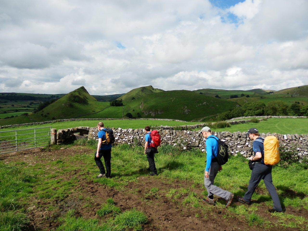 We headed down the slope of Hitter Hill and as we neared the bottom Parkhouse Hill ahead looked steeper and steeper.  We slogged our way up, with my early walk road pace amongst the leaders falling off to leave me in my more natural 8th/9th ish. The group took various lines up the hill, with me zigzagging more than most and walking along most of the top of the ridge through nettles and assorted undergrowth. We regrouped at the summit and rested for a few minutes to take in the views – in particular those down the remainder of the “Dragon’s Back” towards Chrome Hill.