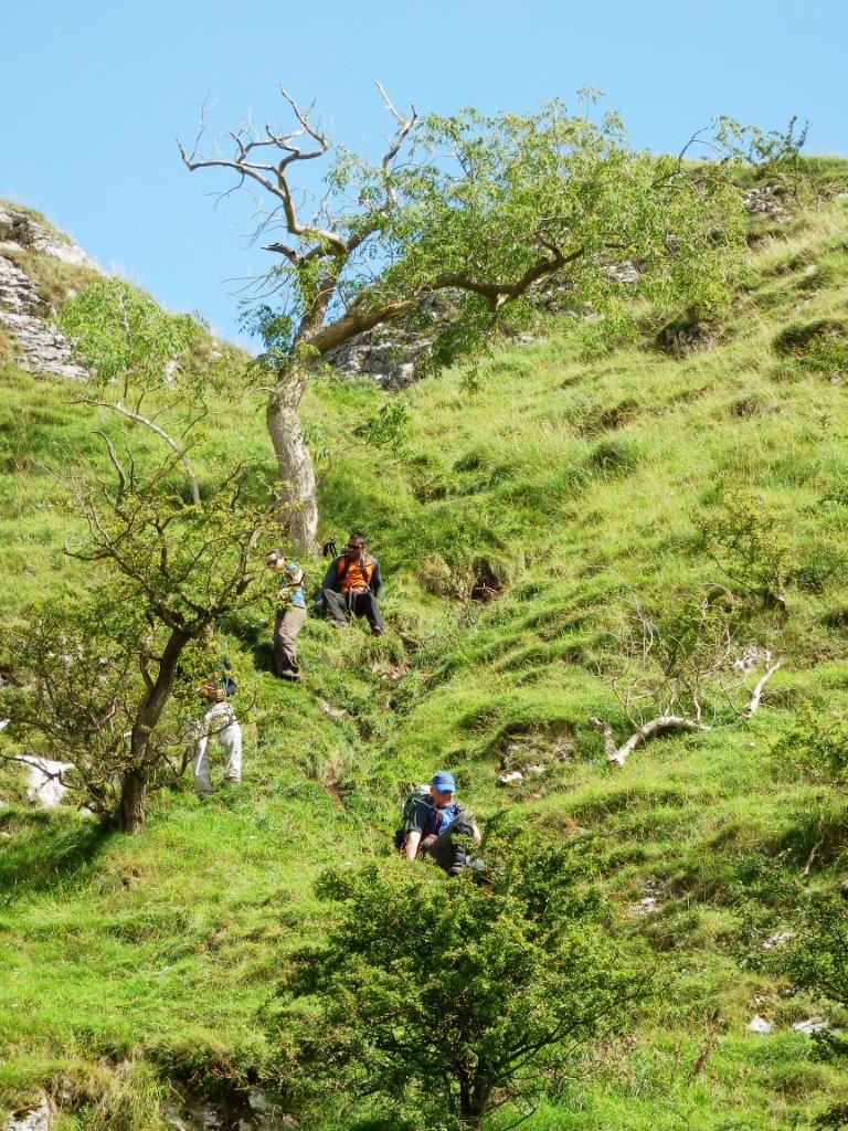 Fatalities avoided, we drew our breath at the bottom and then headed for Chrome Hill.  Initially a more gentle proposition up a shallower slope, it steepened after we crossed the wall under the tree. I found myself 11th, partly due to plenty of photo stops, partly due to my pace, and partly so that I didn’t get too far ahead of Mike (@PeakRambler) who served an important purpose in the pictures I was taking, helping to give a better sense of scale.