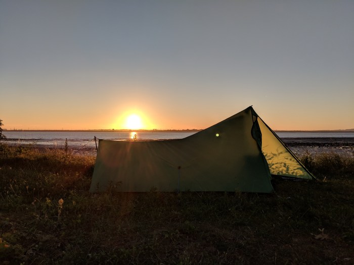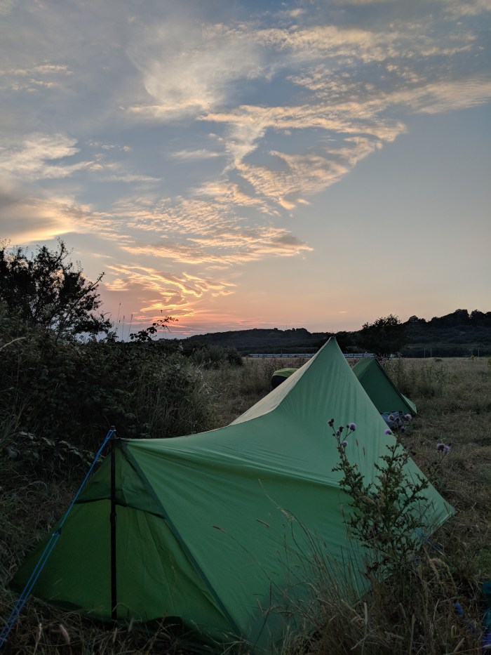 By now I’d taken the decision to part with my Hexpeak and Duomid and to just have an all year-round mountain tent (the Scarp) together with a summer / fast and light lowland tent and a winter lowland tent (the Helm 1). The Stealth 1.5 made its debut on the shores of the Thames on my first post-illness camp in late June. A statement of intent, if you like, of getting back down to things. A meetup with Colin to walk the first bit of the Saffron Trail followed in July.