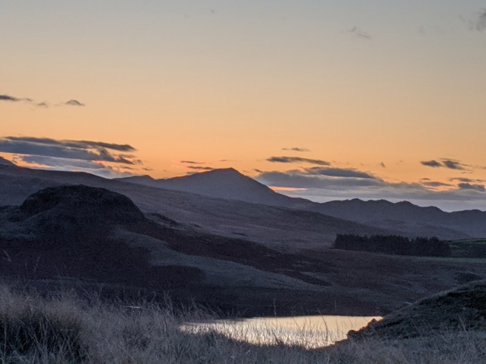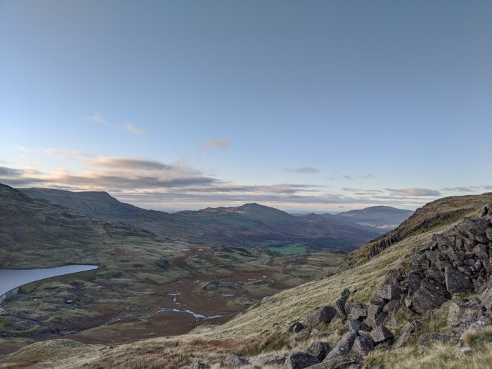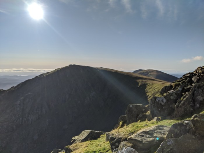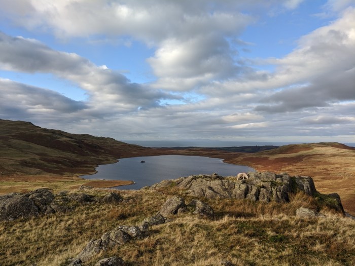 An orange glow spread slowly over the Coniston Fells. After an overnight ponder, I’d come up with a possible alternative to my planned route over Harter Fell and up into upper Eskdale – a route I’ve done most bits of several times before (it never gets old though). The new idea felt a bit more achievable though and I packed up with a decision to go for it already made. Although still a bit breezy, the views were clear and the fells were looking stunning.