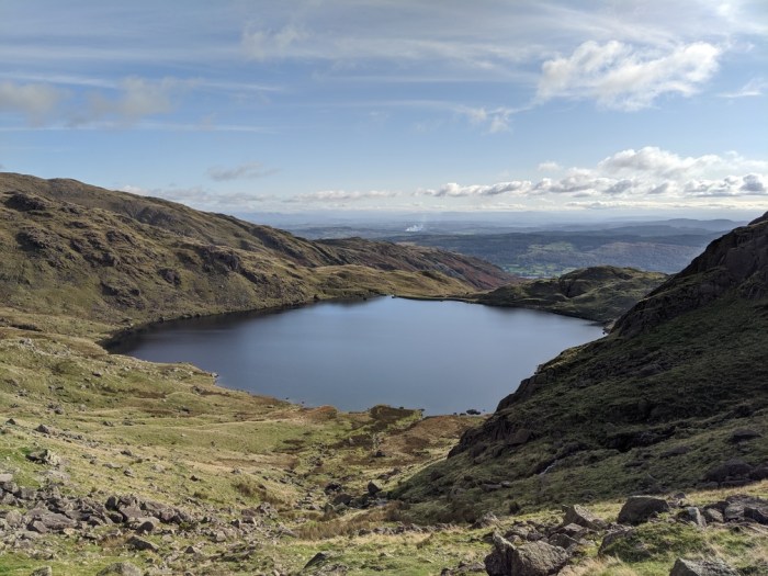 Time was marching on though and I realised I didn’t have enough time to get to the Old Man before my cut-off time for heading down, so I decided to drop down straight from Levers Hause to Levers Water, a route ‘d also never taken. After a bit of slipping over scree the path became bearable, steps even appearing in places. Soon I was down at the tarn and it was just too good to pass up the opportunity for a bit of a sit by the waters .