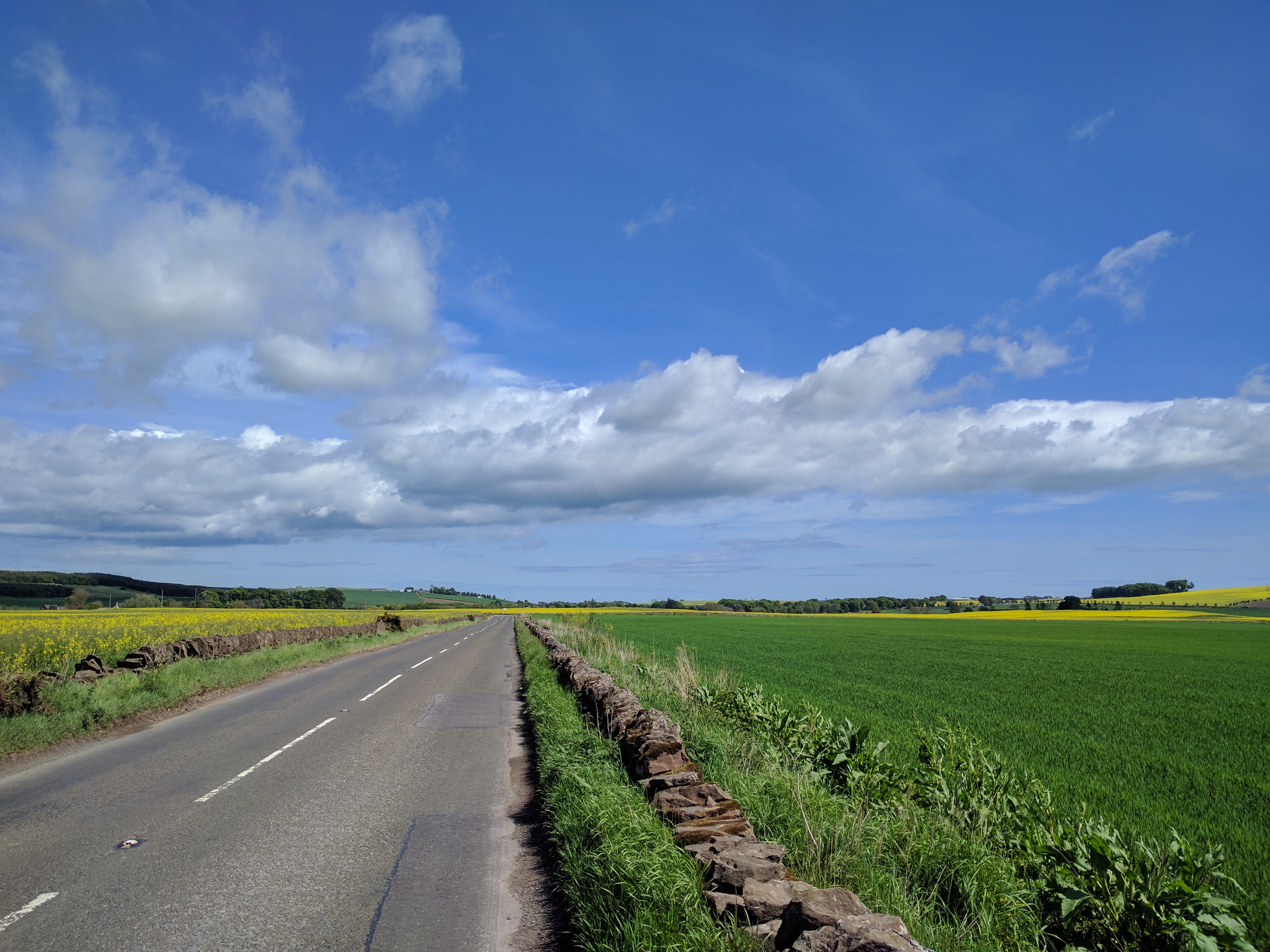Tarmac pretty much the whole way (as someone wanted to “bag” the milestones counting down to Edzell), and therefore, mundane walking. But in company, such mundane walking is a companionable amble with many stops and pauses, and is totally fine.