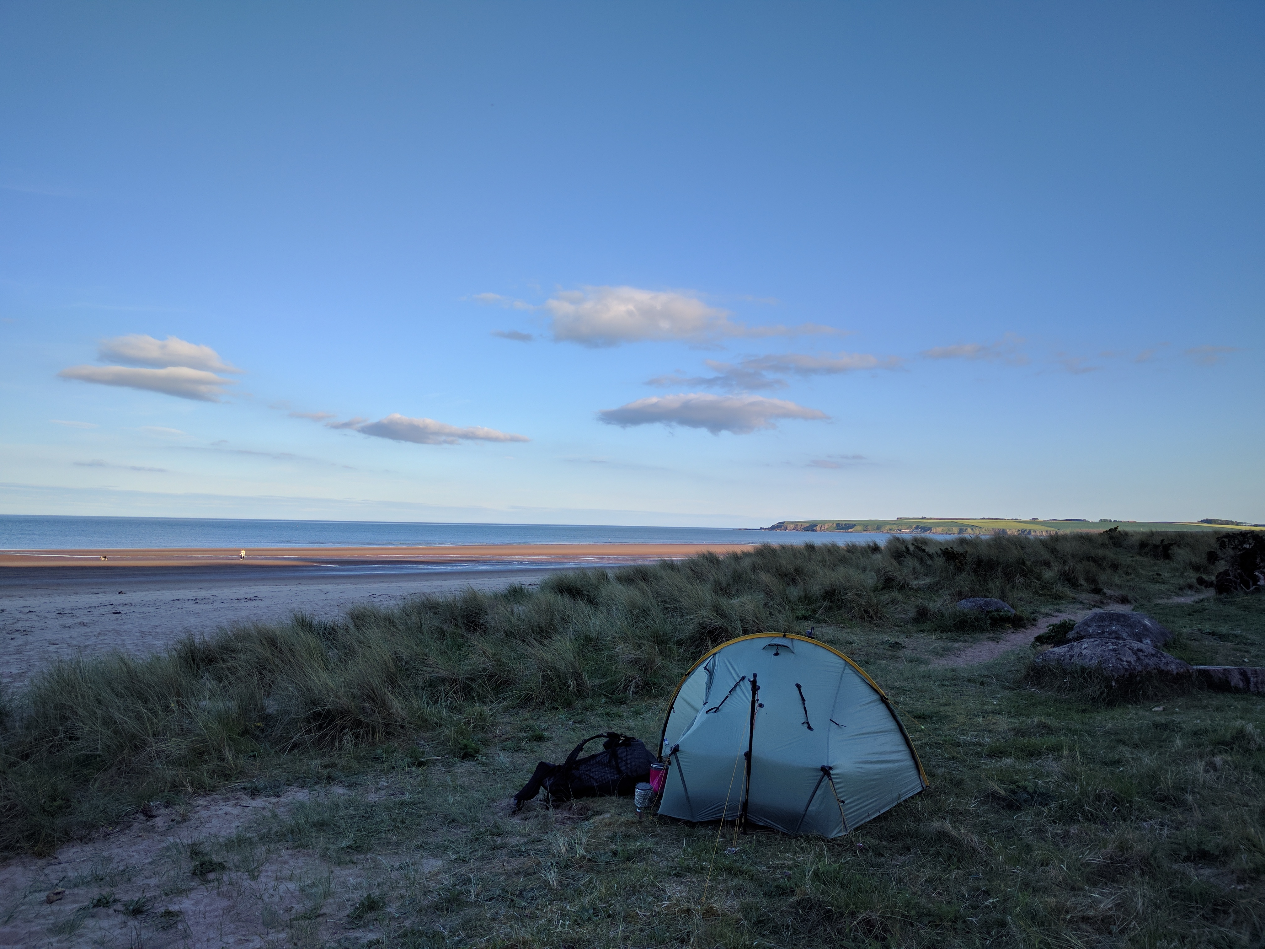 If I were doing this on a strict day X basis, I’d have finished with 2017 in my previous post. For 2017 I hit the coast at the end of Day 13 – just as the Lunan Bay cafĂ© was about to close. Too late to head for Montrose, with no dinner booked and no accommodation sorted, I dossed on the beach. Which actually was far better anyway.