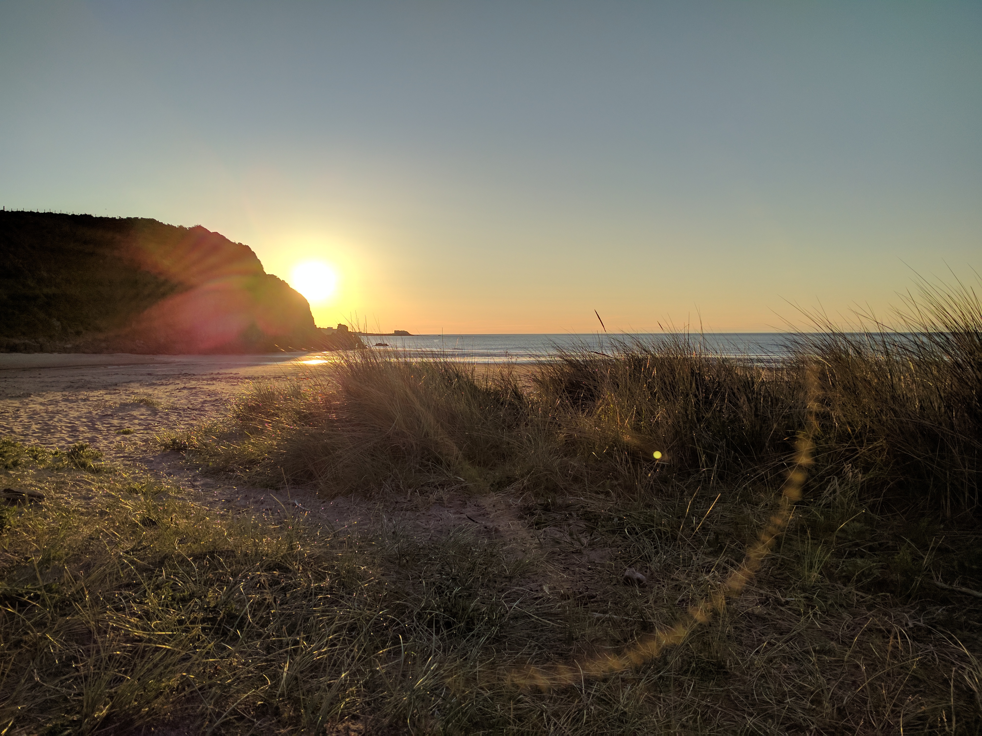 The far end of the beach afforded a flattish spot on grass covered dunes that was decently solid and above the tide line. I just lazed there until all of the local youths had given up whatever they were doing in a nearby cave and headed for home. The guy that locks the car park came over to me and I thought we were about to have an altercation, but he was just coming to tell me the car park was about to be locked up.