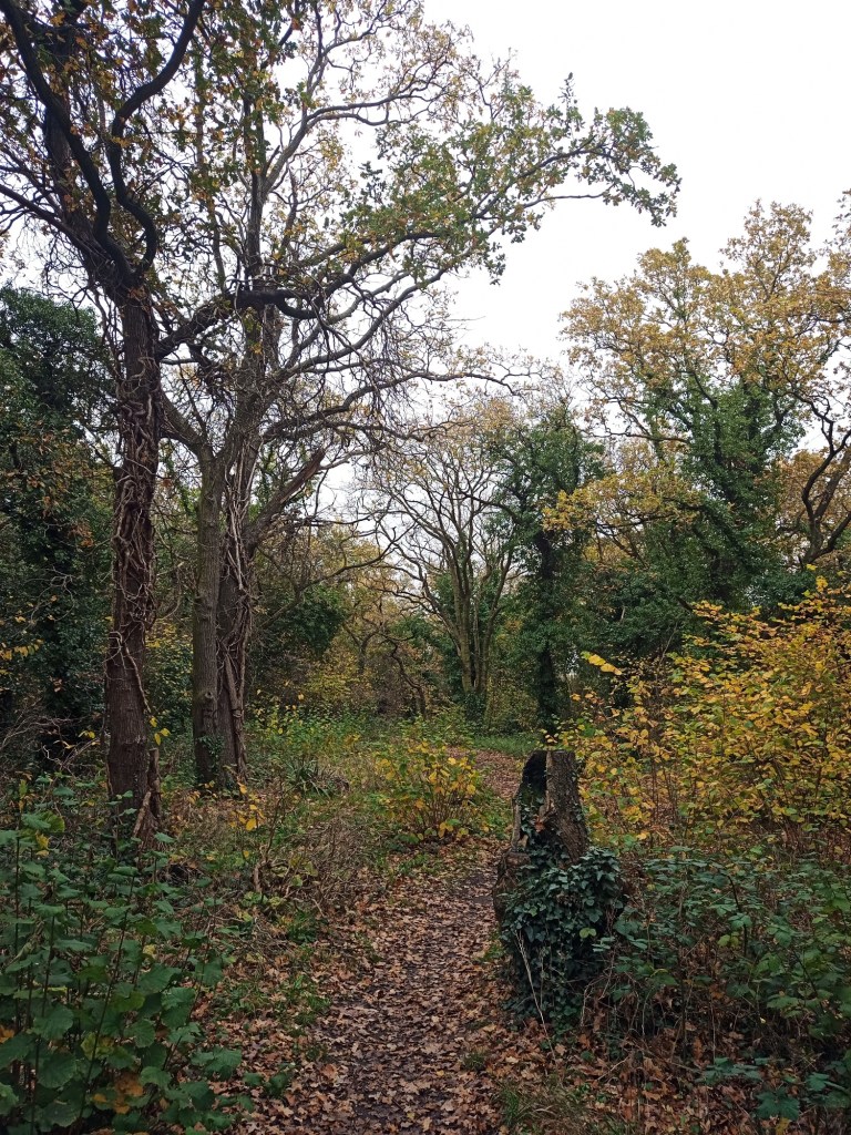 With the turning of the seasons, the times of early morning and early evening walks are gone, and my work day has been reshaped so as to allow for a walk at lunchtime instead. Because this limits how much of a walk I can do, I have found myself doing variations on a 4-5km loop, in which The Wood features each time. Indeed, The Wood is the part of the walk I look forward to the most. It’s not difficult to see why, when I tell you that most of the rest of the walk is paved.
