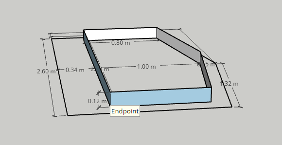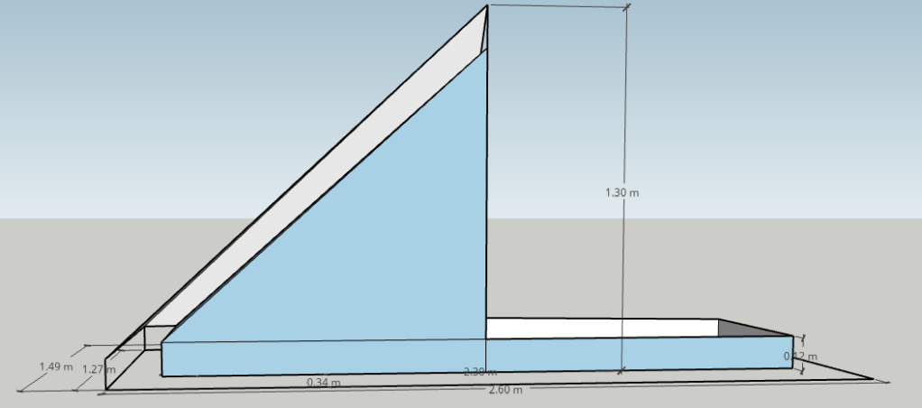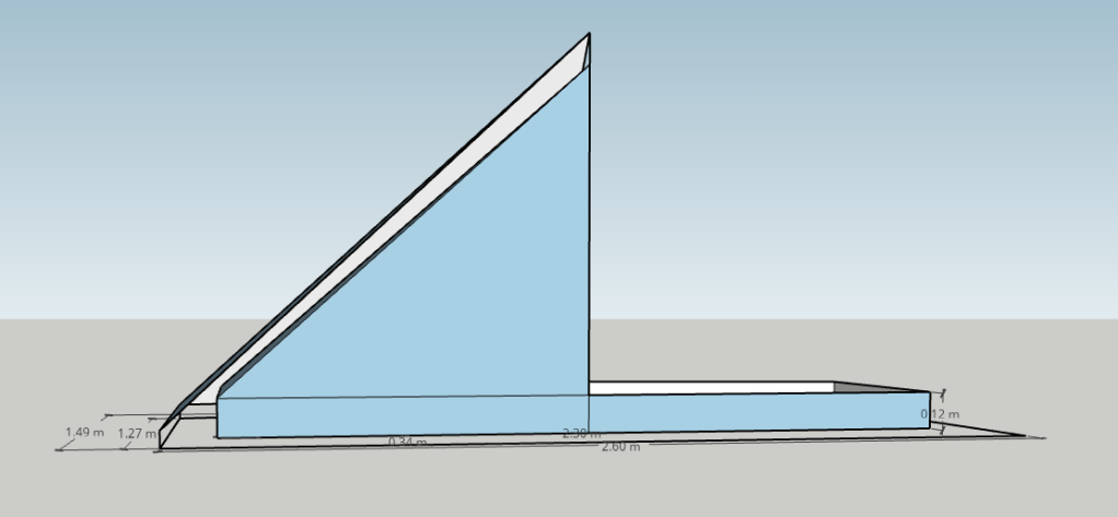 I initially looked at a bathtub height of 15cm, but found that scaling it back to 12cm allowed me to shave a bit of footprint off the tent overall, and importantly to ensure that every fly panel had at least one side that fits the width of the fabric I’m expecting to use. This makes it easier to fit the shapes and plan how much fabric to buy, as well as ensure I’m working with the weave of the fabric itself.