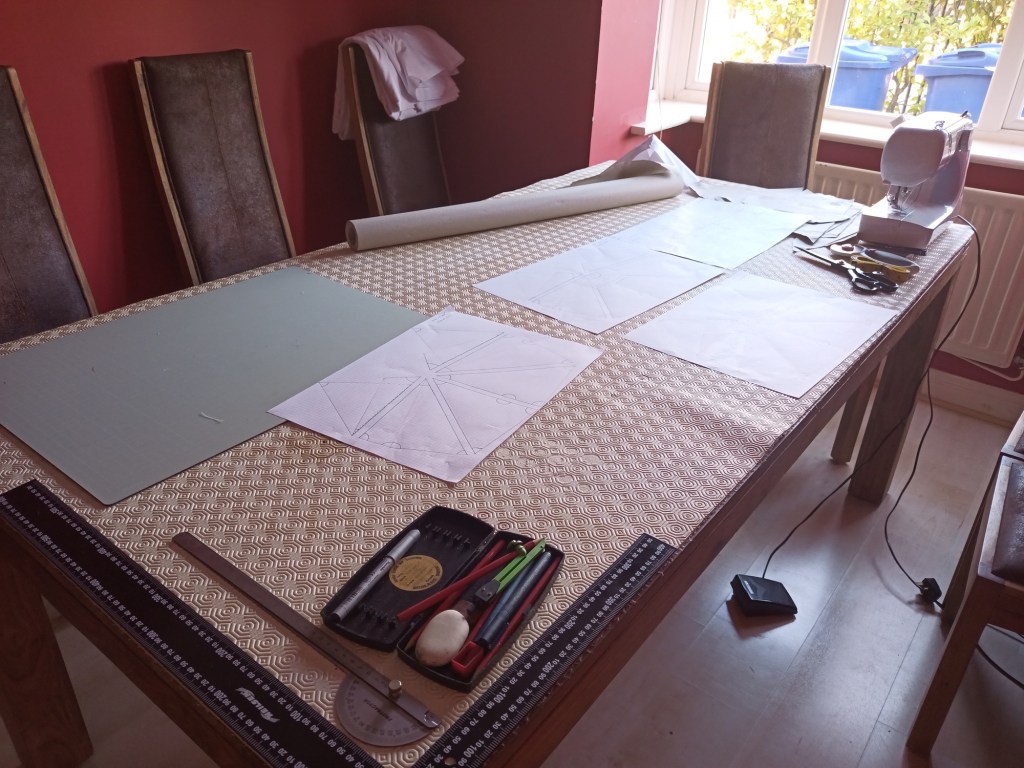 So this weekend, we’ve been working on this – and I say “we” deliberately. Yes she’s been doing the sewing, and in conjunction with that I’ve been working on refining the approach to accurately scaling up the pattern, and indeed deciding what actual shapes to cut.