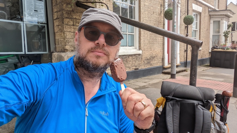 Now joining a walk marking the 1536 Pilgrimage of Grace over the fields approaching Pocklington. Here having now learned that the Buddhist Centre and cafe was closed for two weeks (it’s like the whole region has been warned I’m coming, I’m sure), the only real option to top up my supplies was to head into Pocklington itself. A mile along the road, then through a golf course brought me to the town. The staple basket of water, cold drinks and ice cream was acquired and then I headed back to the trail. All in all an 8km detour, although in truth it didn’t feel like that much. But I was now sorted.
