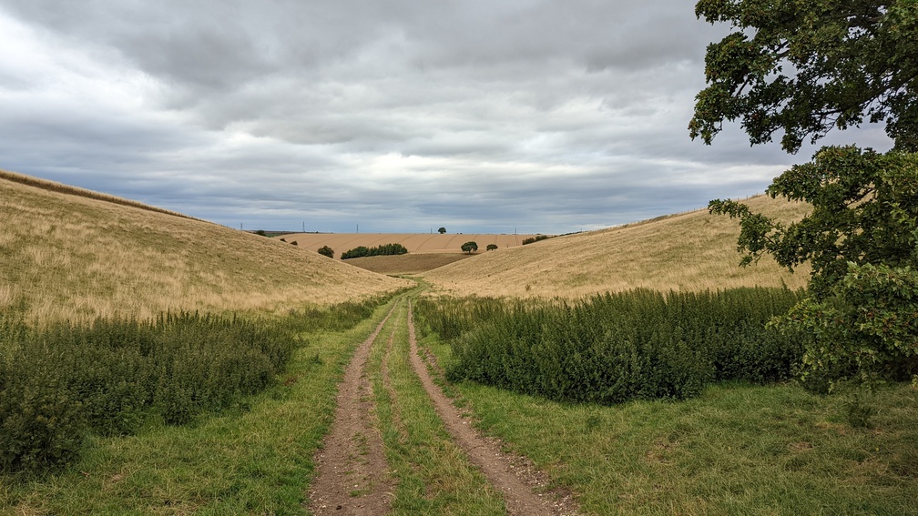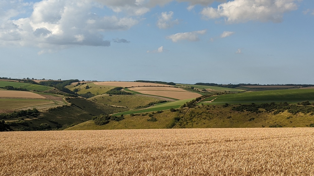 Back on the YWW I headed up through a wheat field, crested the hill and looked down on some more dales.