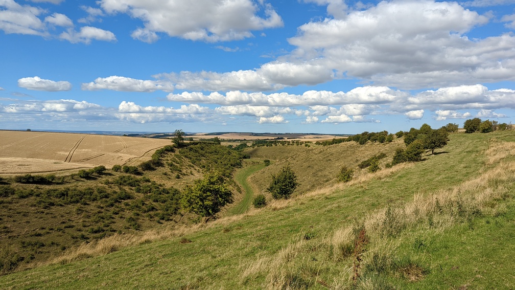 After the campsite, or indeed parallel to it if you don’t take the detour, the YWW follows the northern edge of the escarpment, and I started to feel at home – much of this was just like the scarp slope of the North Downs.