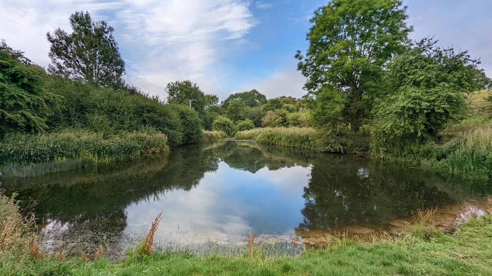 A short way back down the road towards the trail was the garage and shop, where in my haste to buy the usual items I left my trekking pole propped up outside as I set off to resume the path. It wasn’t until I reached the village green and pond that I realised and had to scoot back to retrieve it.