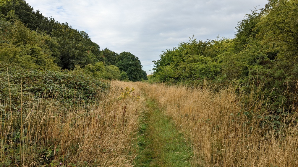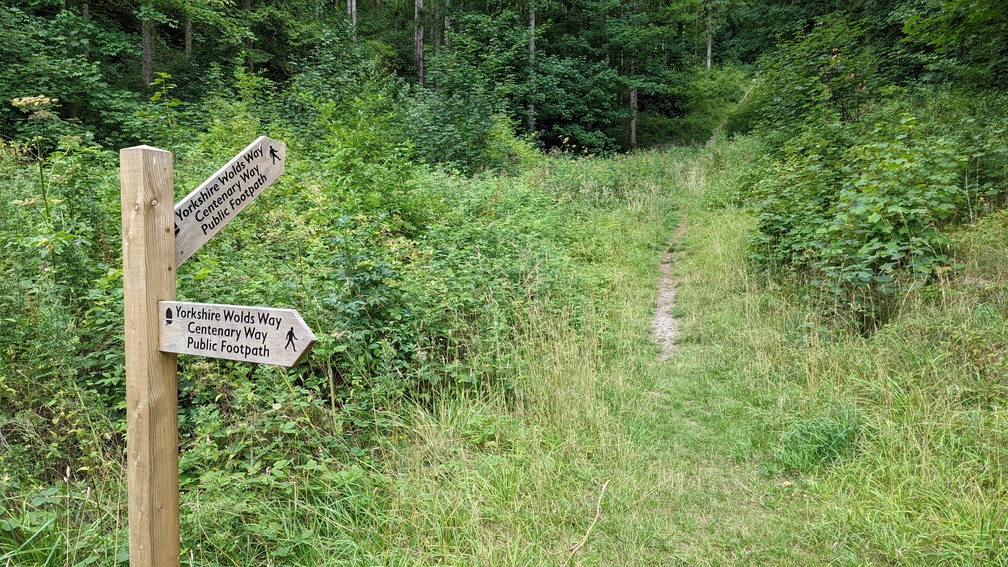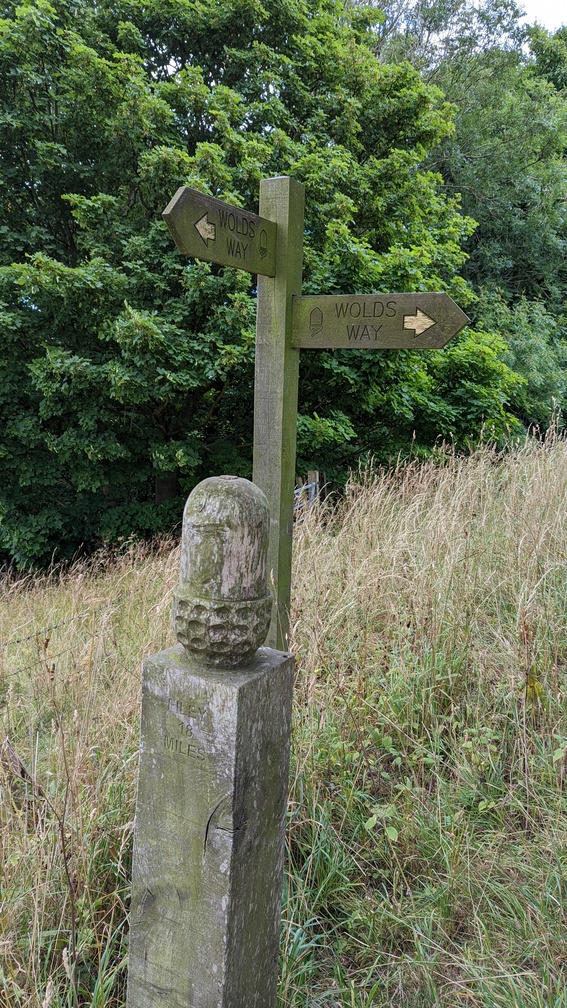 I hit the road to Wharram-le-Street, then a succession of wheat fields and small wooded bits. Flying along quite nicely, I was very much in the mode of see how much I could do today. with about 50km to the end, it was pretty clear that I’d finish tomorrow, and given that was the case it would be better to go further today to make for a shorter finish and earlier arrival at home the next day. But it would also give me the option of extending the walk to Scarborough if I wanted.