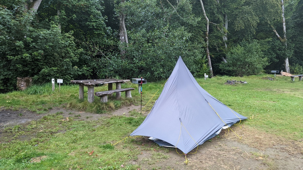 After a whole day travelling, I stepped off the bus near Brithdir on the main road into Dollgellau and set off for the campsite, a few hundred metres away, as light rain started falling. A riverside pitch which was pleasant enough, but the weather was too manky to enjoy it, not to mention it got dark just after I pitched.