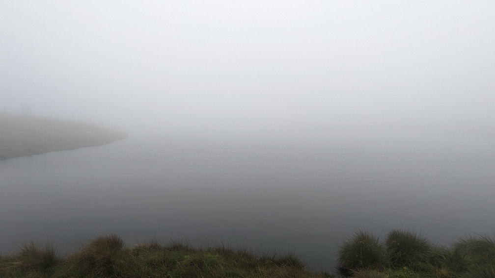 A secondary summit was gained and then I found myself staring through the mist at Llyn y Fign.
