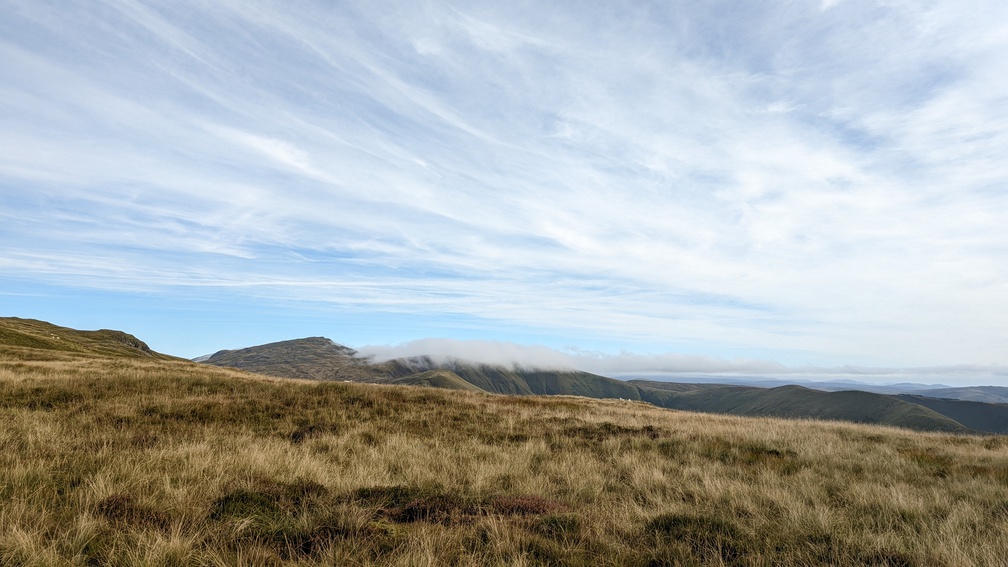 I couldn’t see much though as surrounding hills were shrouded in cloud. Also being exposed to the wind, it was a bit cold, so I decided to push on.