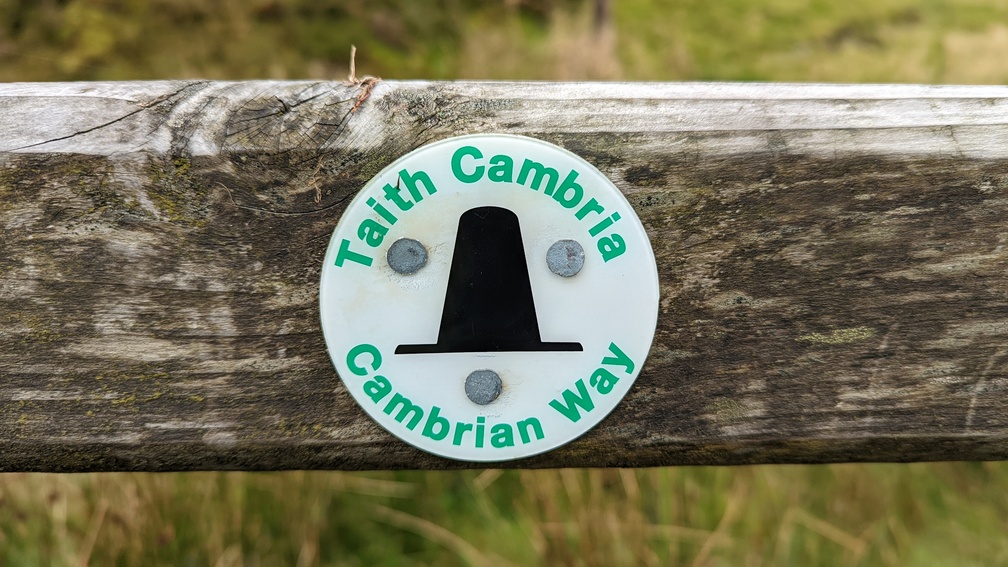 As Bob disappeared to the west while I finished my elevenses, I knew that would be the last I’d see of him due to his more ambitious target for the day which would keep him ahead of me. Up to the top of Cribyn Fawr I headed and then a descent to the next bwlch, where on a stile I found my first ever proper Cambrian Way marker.