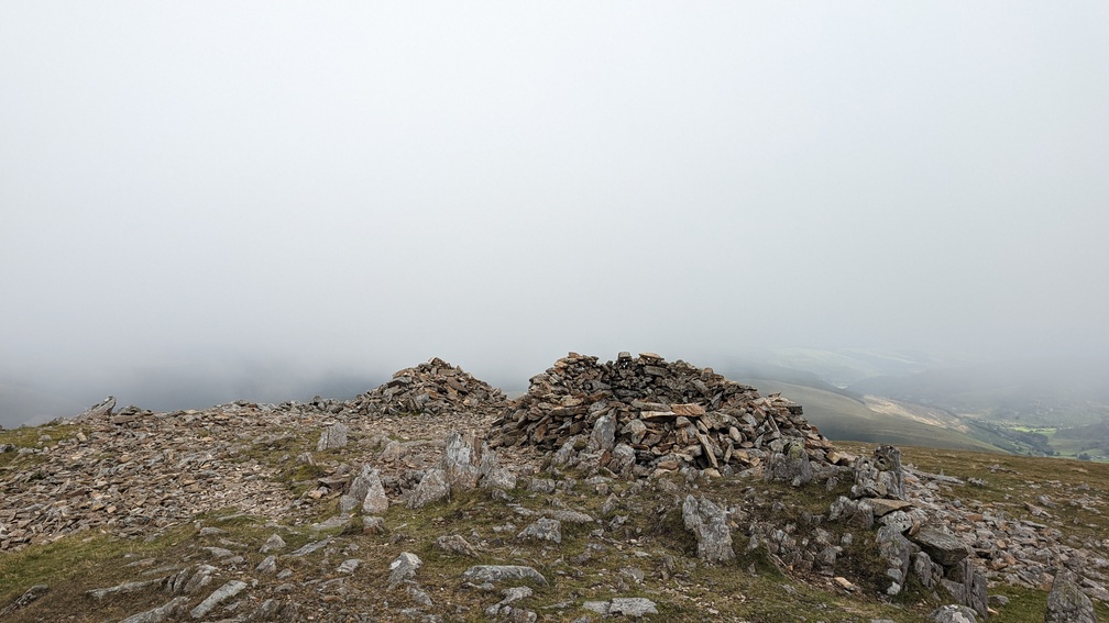 The climb onto Gau Graig is a steep scramble up a rocky gully, which was hard work with a sizeable pack on. Then a more gentle stroll alongside the fence before darting off to the right to bag the summit itself.