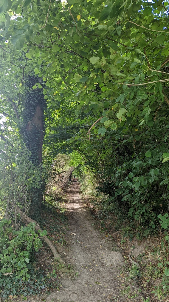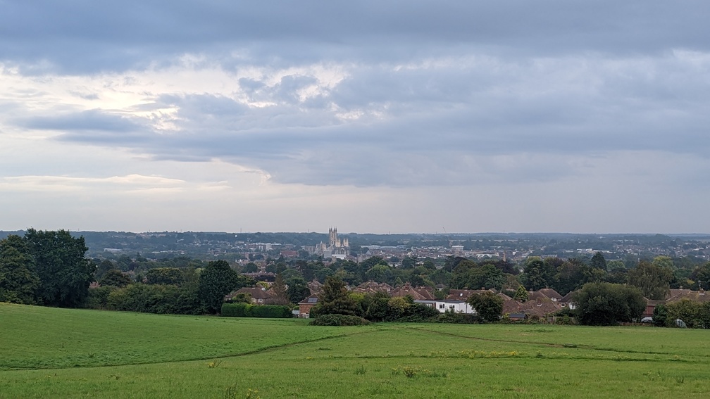 First, though, I had to get to the start of the walk, back in Wye. Camped high above Canterbury, I’d had a peaceful night beside the old apple trees. Now I had to get down into Canterbury to get a train to Wye. Luckily there is a footpath running from almost the campsite down towards Canterbury West, avoiding street walking. The path skirts the edge of the residential area and then continues through it.