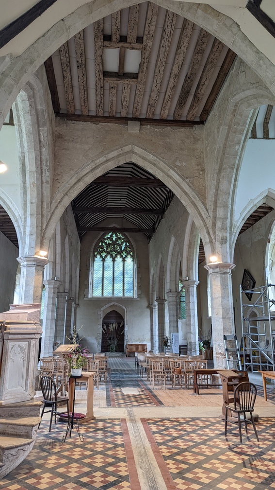Then retracing our steps through Perry Court Farm and onto Boughton Lees. We popped into Boughton Aluph church, to be given (quite a long) history of the place. And another stamp.