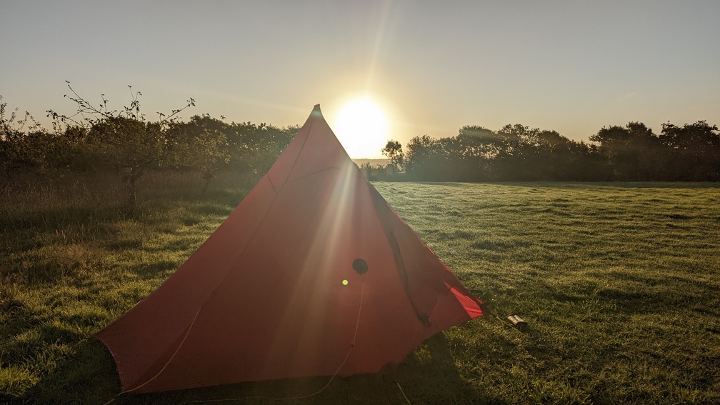 I was just settling down for bed when there was a bit of noise and lights shining wildly. Another party arriving to pitch on the virtually empty camp site. Bit annoyed they were so close.