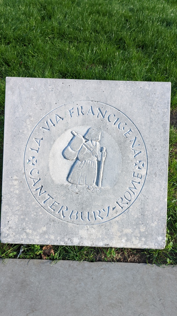 …at this stone, marking the start of the Pilgrimage route to Rome. (We weren’t going all the way).