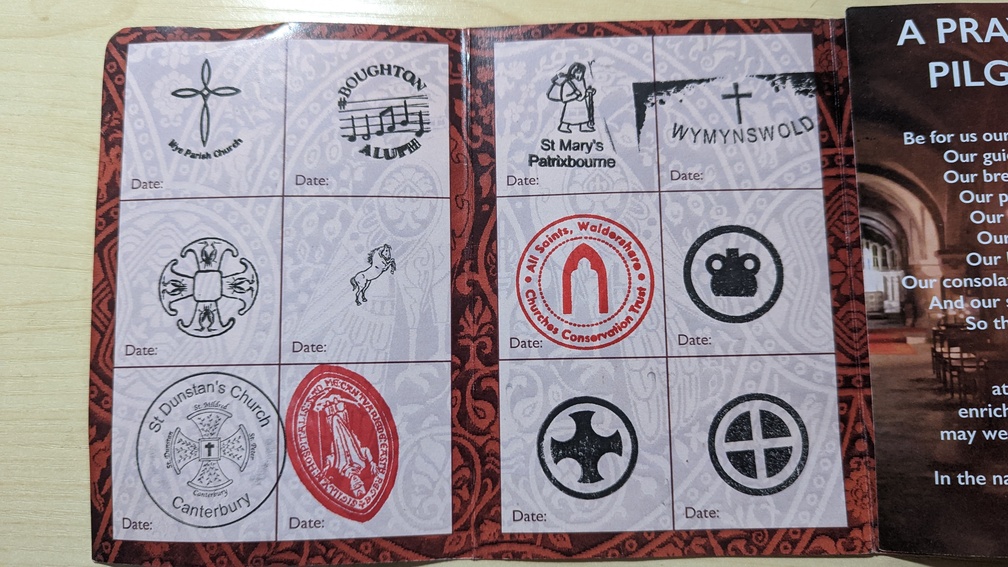 The group assembled and we set off, first walking into the centre of Wye to be issued with Pilgrim Passports and get the first stamp in them. A duck inside Wye Church too.