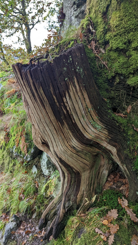 Things became progressively less easy from here on, the path becoming ever more twisted and turny, uppy and downy. I’d been clambering over rocks almost from leaving my tent this morning, but now it was rocks and trees. The torture peaked at Rob Roy’s Cave which involved a big up and then down around and over rocks with plenty of chance to slip.