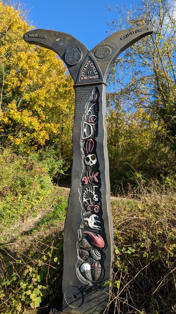 I stopped at the garage at the bottom, by the side of the A229 to grab some lunch and a drink. Just behind the garage was one of the National Cycle Network posts.