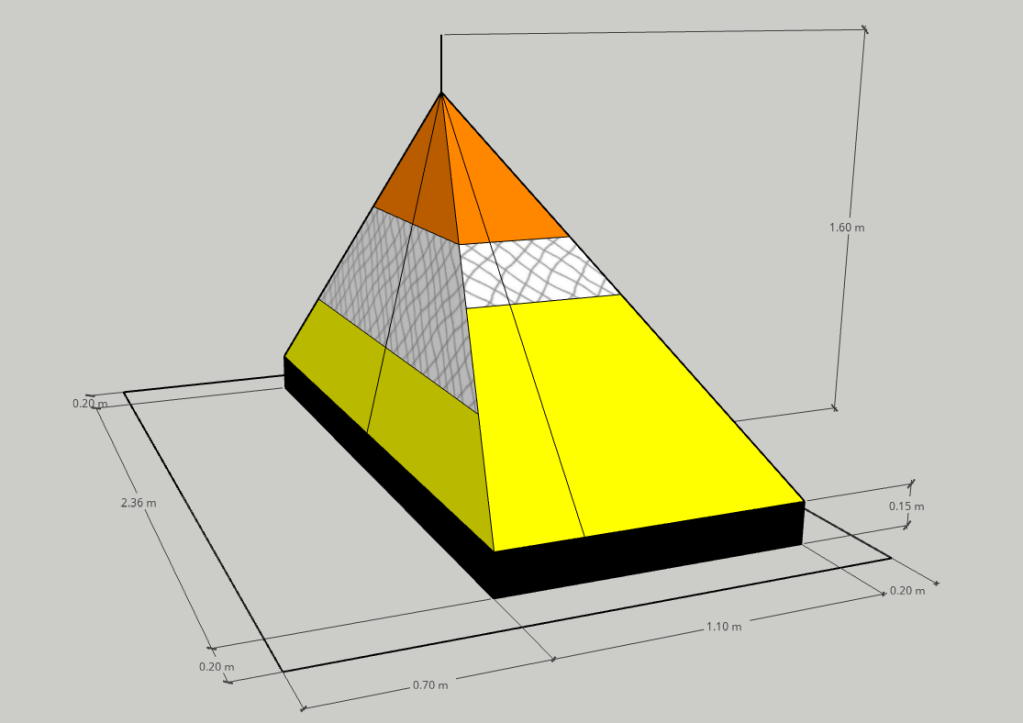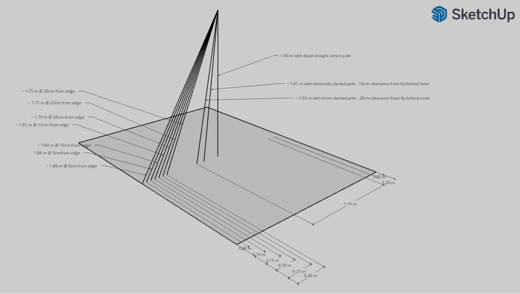 The above diagram shows the position of the inner and what that means for pole positions and lengths. I considered two main options: a slanted pole and an A-frame.