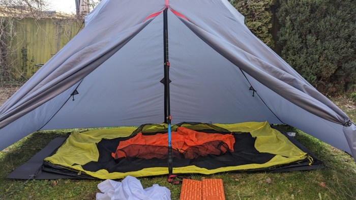 - Luxe’s Minipeak XL – this had the amount of inner space needed behind the single support pole but at the cost of an enormous footprint and weight. I did consider whether I could use the inner with something like the Duomid XL, but sourcing it separately was a bit of an issue.