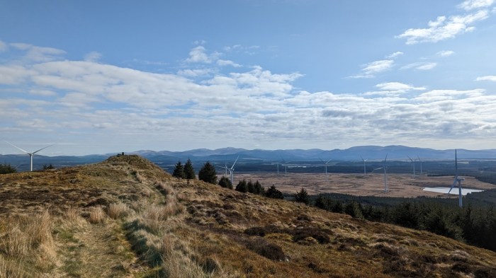 The trail then took me up through the forest to the top of Craig Airie Fell, from which I could look down on Loch Derry which I’d be passing soon.