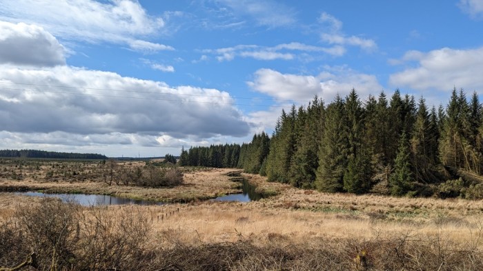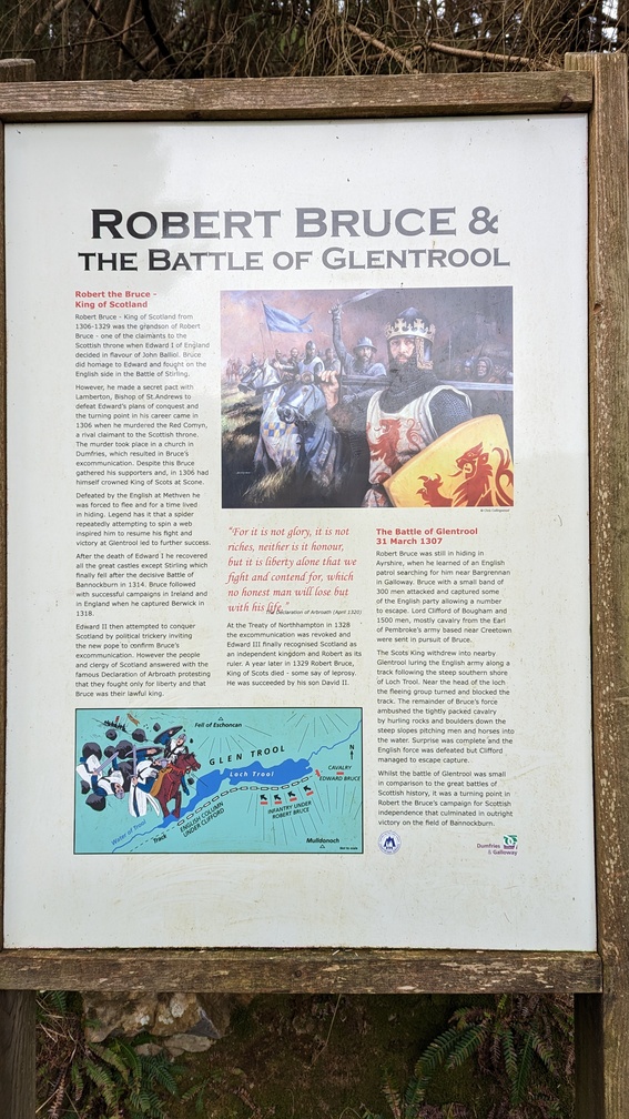 The forest gave way to a road, which gave way to a rather pointless cross-country parallel to the road. Then I was in Bargrennan and debating whether a detour to Glentrool village, or the visitor centre would be a good idea. Feeling I’d be tight for the cafe at the visitor centre, I decided to leave it until later, as the trail loops back quite close to it – I could then pop in if there was time.