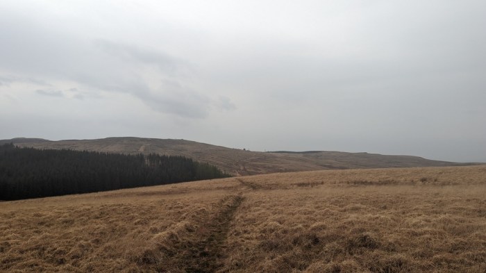 The descent to Culmark from Culmark Hill was dogged by some iffy waymarking, but eventually I was on the track leading away from the farm and heading up towards forest.