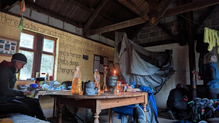 Allan’s Cairn was a bit underwhelming so I pushed on, keen to finish the day’s walk. A descent on stony track brought me to Chalk Memorial Bothy, and sticking my head inside I found Afke.