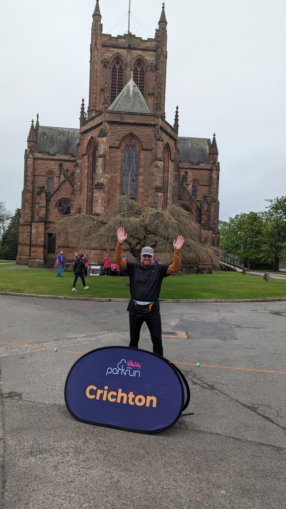 It wasn’t long before I was in Dumfries, where I’d booked my hotel for the night, carefully chosen to be handy for parkrun the next morning (literally outside).