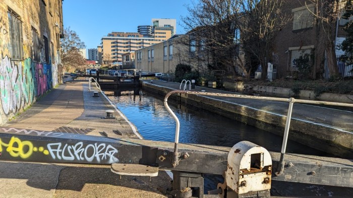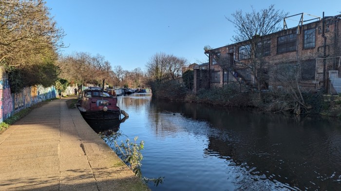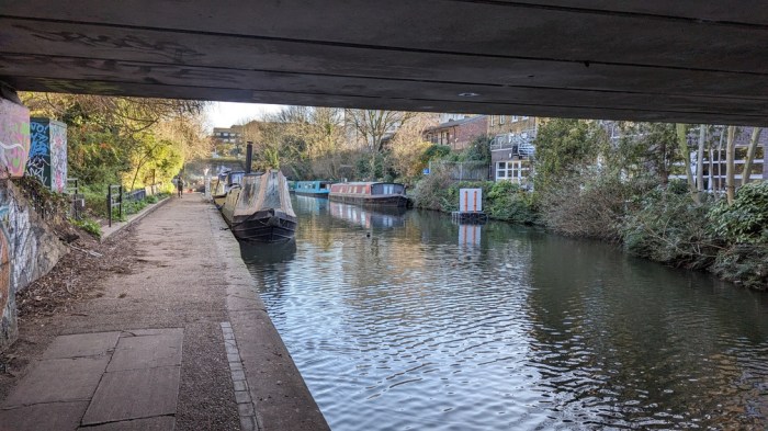 Back on the Regent’s Canal, it’s a similar diet of backs of industrial units, offices and apartments. The tow path is at least less mucky than last time though.