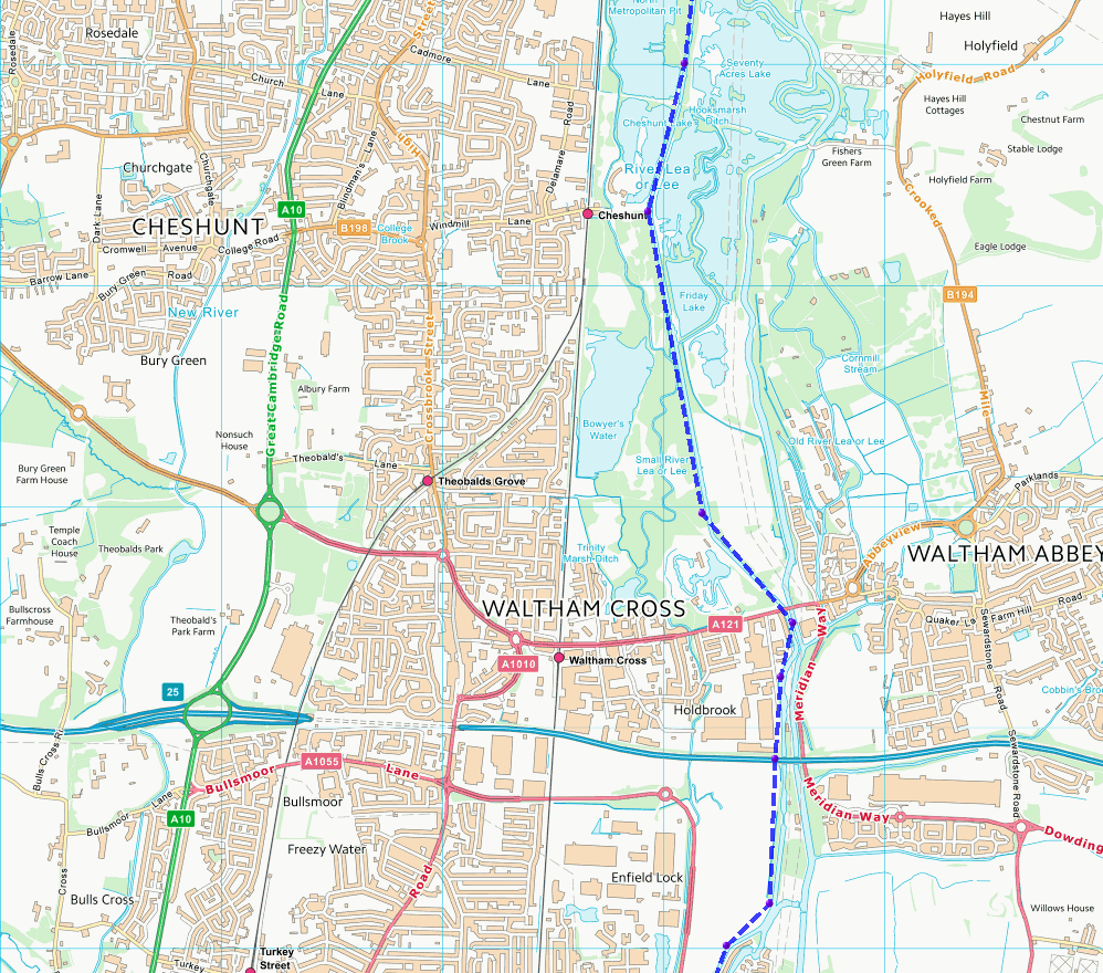 After Waltham Cross, the reservoirs were replaced by more naturally looking lakes and various small ponds.