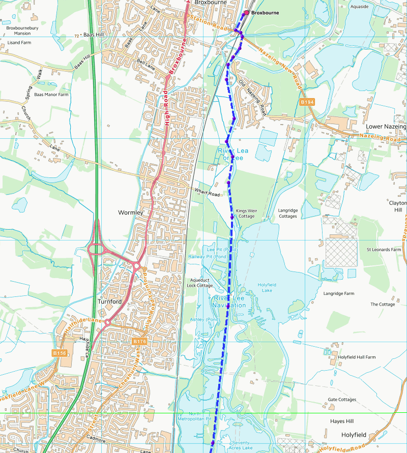 I approached Broxbourne and had had enough for the day. The distance to the next sensible stopping point was more than I was prepared to do, so called it there and then. This leaves me 3 comfortable days or 2 much harder days to finish the walk.