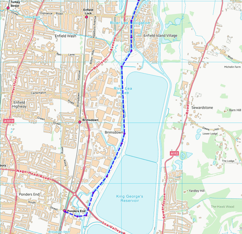 Back at Ponders End, I retraced my steps back to the canal and headed north, once more following the line of reservoirs that lead up the Lea Valley.