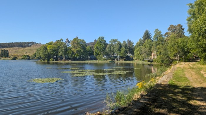 I targeted Dinnet for lunch as I knew there was a convenient bench under a tree in the car park, and made full use of it. Just as I was finishing up, the Spaniards turned up and dragged me along to the pub, which turned out to be closed until 3pm. No way I was going to wait that long so I pushed on, after hearing there was something a few miles further on.