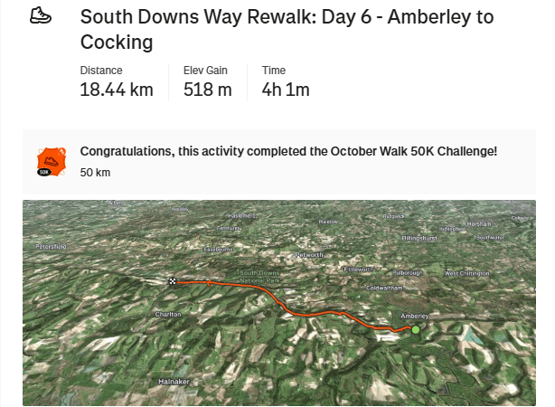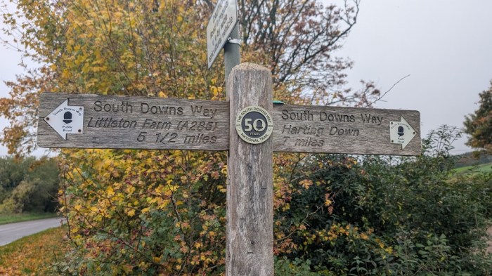 Yes, it happened again. After last month’s failure to get to the Lakes, I earmarked this week for the next attempt. And the same thing happened. maybe not quite as windy, but certainly not enough dry weather to make it feel worth it. So I picked up the South Downs Way again, resuming where I left off, this time from Amberley. I timed it not so much for the forecast but to fit with other things this time. The middle day was forecast to be overcast with some patchy light rain, but apart from that all was due to be dry and calm. “Was due to” again being the operative phrase here…