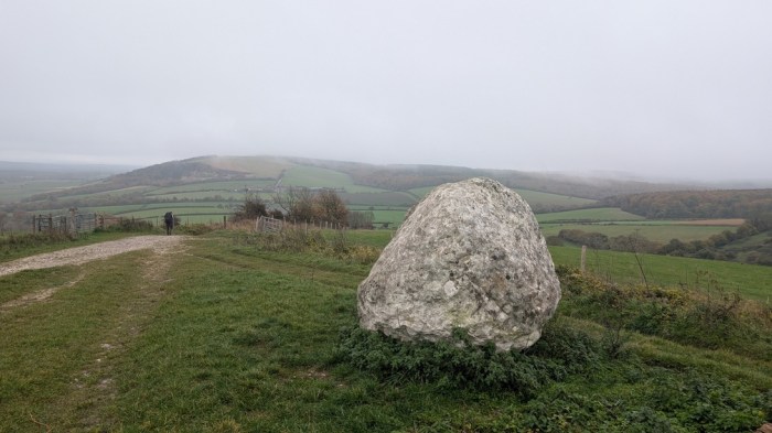 The climb up Cocking Hill is another long slow one. Just as it starts to level out a bit, there’s this large boulder by the side of the path.