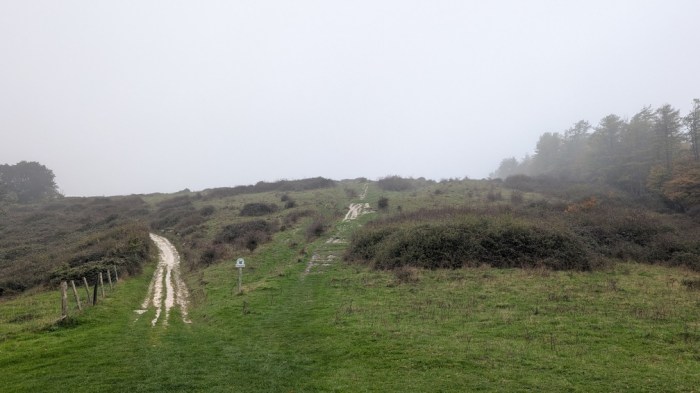 Already quite damp at this point, I continued on, investigating every patch of trees for adequate shelter, and finding none good enough, I continued onto Harting Downs. My jacket was already wetting out and I could feel my base layer getting wet. I was also starting to feel cold when I stopped.