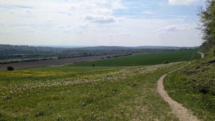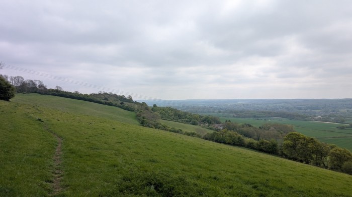 After the morning’s highlight of the bluebells – and there was a lot of them, possibly the most I’ve ever seen in one walk – the afternoon started to drag a bit. A succession of paths at the top of grassy downs, or at the foot eventually got a bit samey.